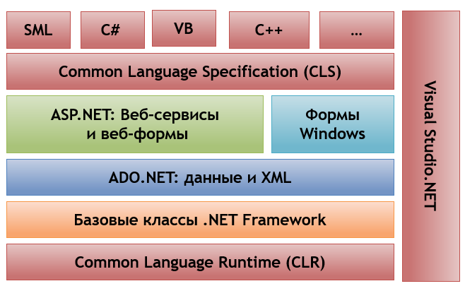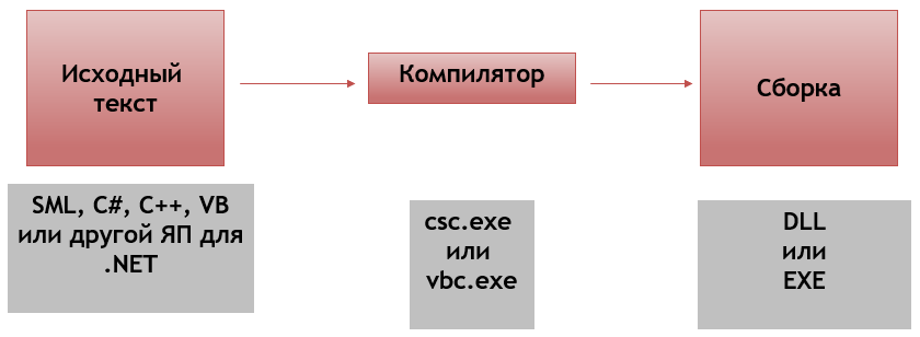 Компілятори мов програмування, включені до Visual Studio, створюють код на проміжній асемблерній мові IL, у якій специфіка вихідної мови програмування зникає.