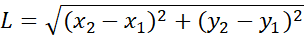 Відстань між двома точками А (x1, y1) та В (x2, y2)