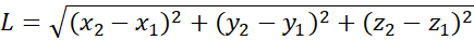 Відстань між двома точками А (x1, y1, z1) і В (x2, y2, z2)