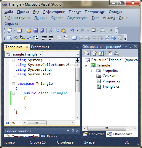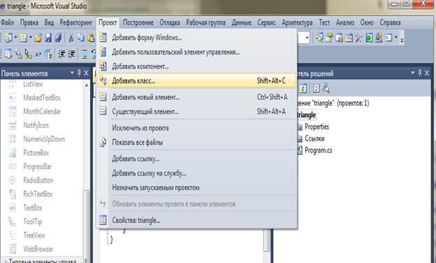 Новий клас може бути створений і в тій самій вкладці, що й клас Program