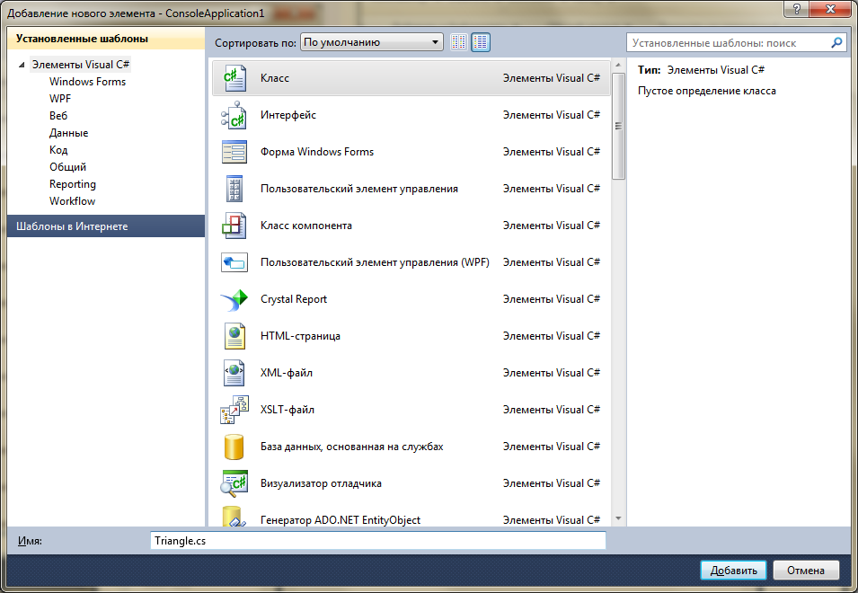Вибрати ім'я. Ім'я класу має починатися з великої літери. Розширення залишити cs. Результат: