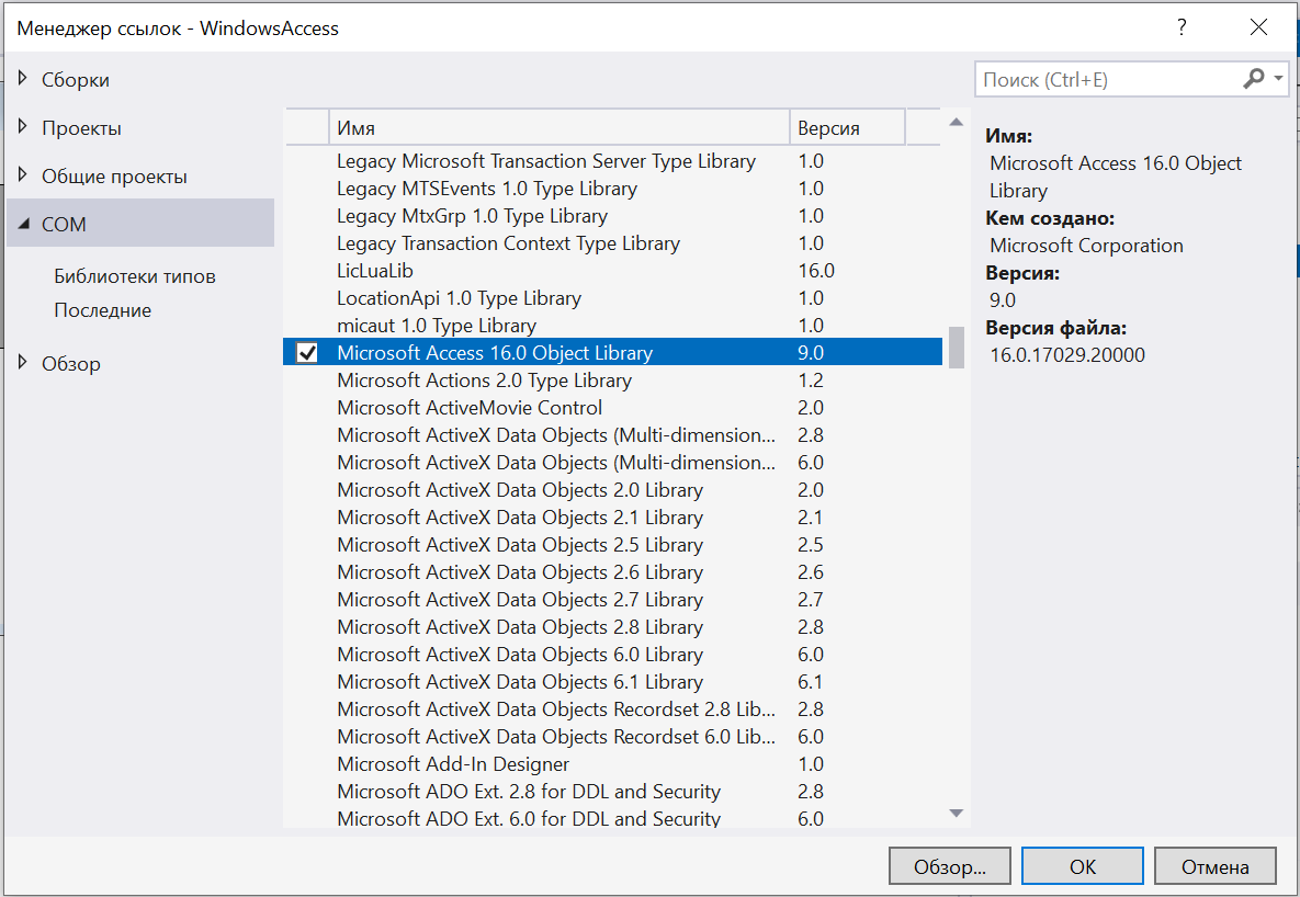 - Вибрати Microsoft Access Database Engine Object Library