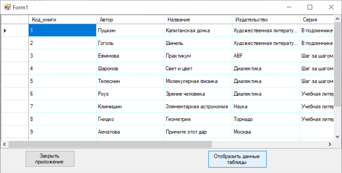 // Відображення даних у DataGridView