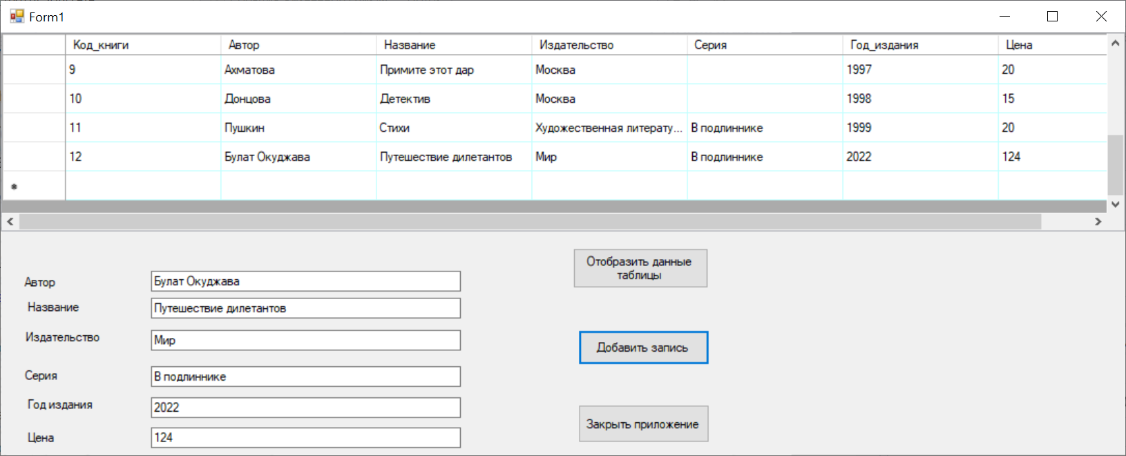 private void AddBook(string author, string title, string izdat, string seriy, int year, float cena)
