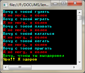 - Метод передачі бажання рибці: жовтим кольором виводиться текст бажання