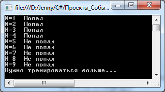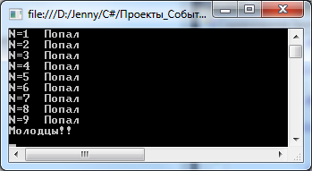 - Обробник події MyEvent: Червоним кольором виводить повідомлення «Це бажання не може бути виконане».