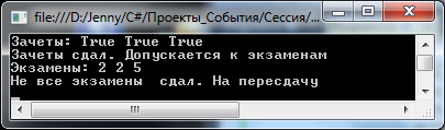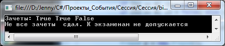 - Метод без параметрів. Якщо всі заліки здані, то логічному полю надається значення true і генерується подія Event1,