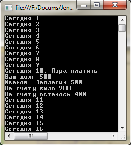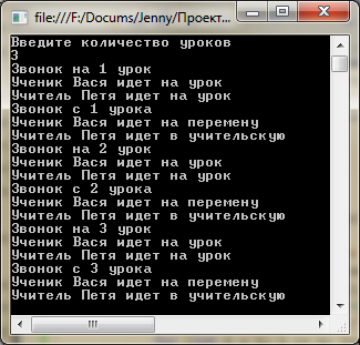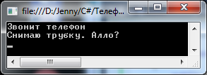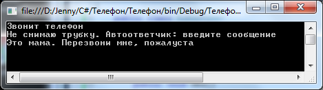 - Метод, обробник події Event2. Виводить повідомлення: «Не знімаю слухавку. Автовідповідач: введіть повідомлення:». Потім із клавіатури вводиться повідомлення.
