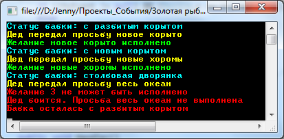 У класі Gold виникає подія: MyEvent – золота рибка не виконала третього прохання бабки.