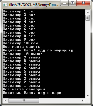 - Викликати метод, який моделює посадку пасажира в маршрутку, якщо є місця або генерує першу подію, якщо місць немає.
