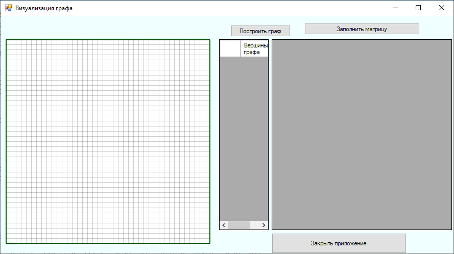 - Створили проект C# і додали на форму компоненти PictureBox, два dataGridView для вершин і для матриці суміжності, меню та кнопки
