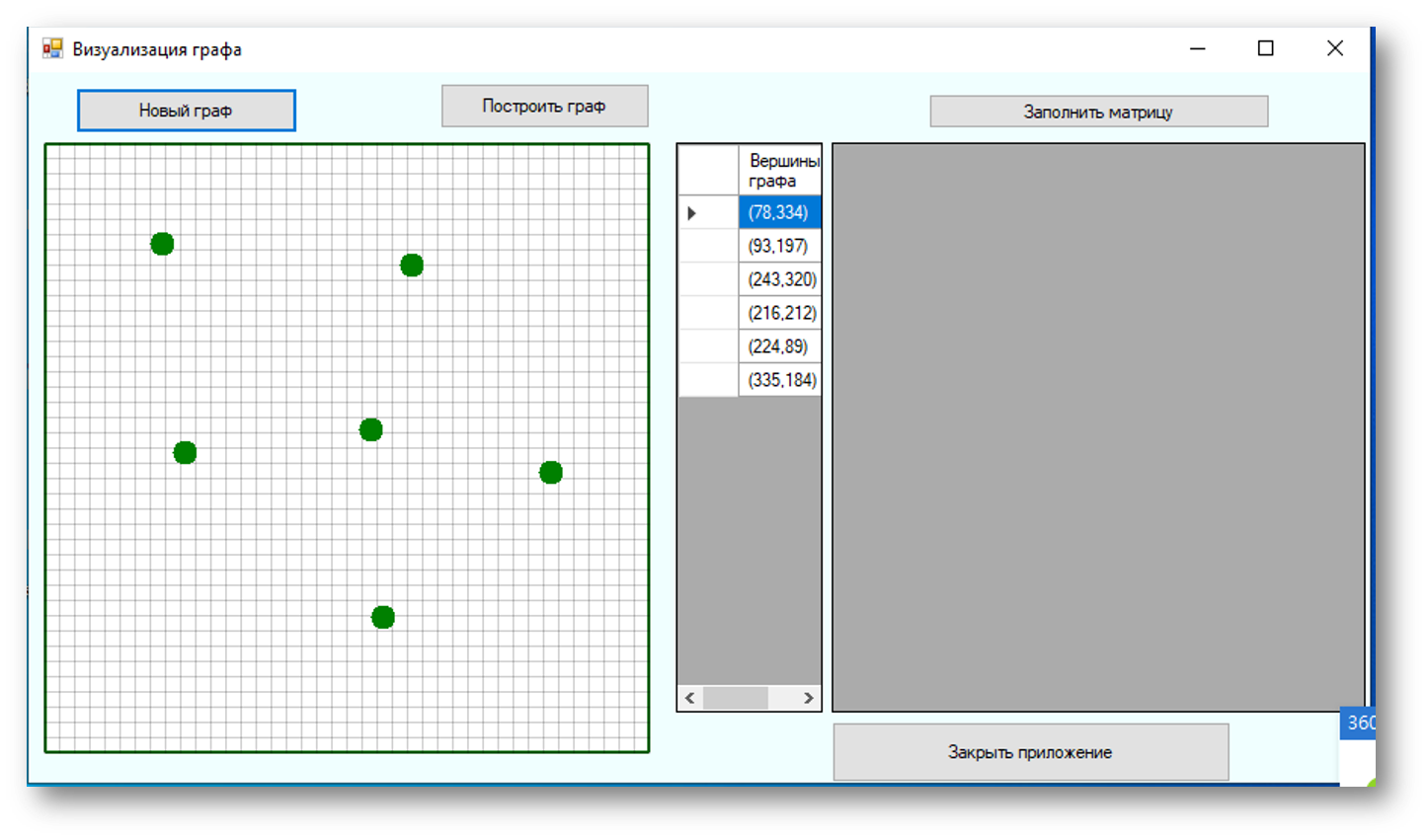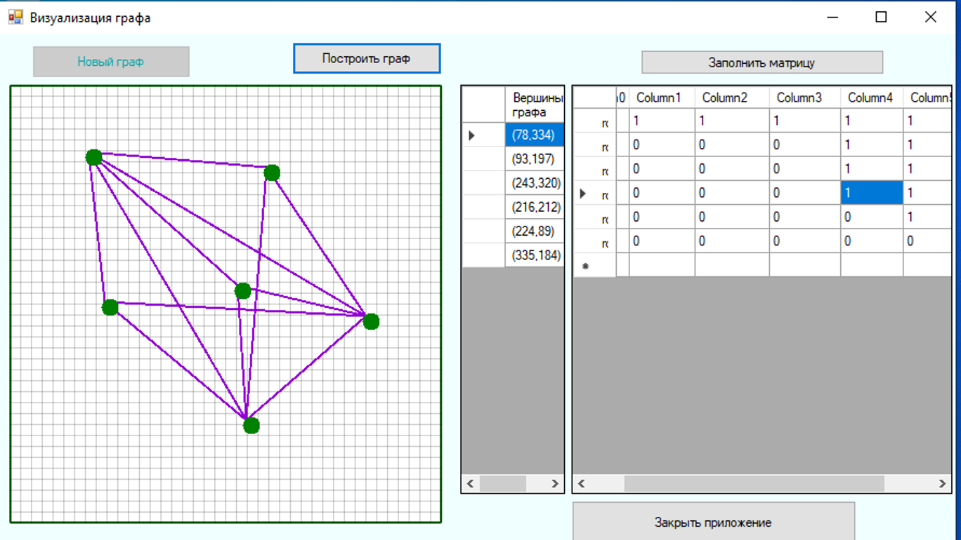 Почнемо з найпростішого. На формі позначимо вершини майбутнього графа, задамо матрицю суміжності та побудуємо неорієнтований граф.