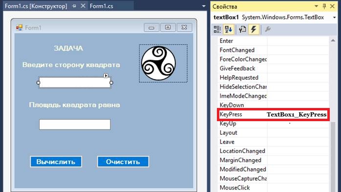Тому до події KeyPress для елемента textBox1 прив'яжемо відповідний обробник.
