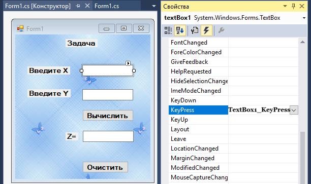 Тому до події KeyPress для елементів textBox1 і textBox2 прив'яжемо відповідний обробник подій.