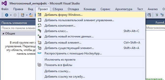 З точки зору програмування, кожне вікно є формою. Тобто, багатовіконний інтерфейс - це інтерфейс з кількох пов'язаних форм.
