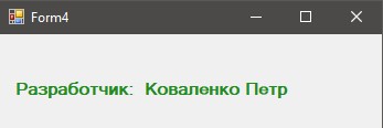 У класі Form4 в елемент label поміщаємо прізвище та ім'я розробника: