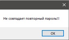 Якщо введені паролі не співпадають, з'являється повідомлення і форма закривається.