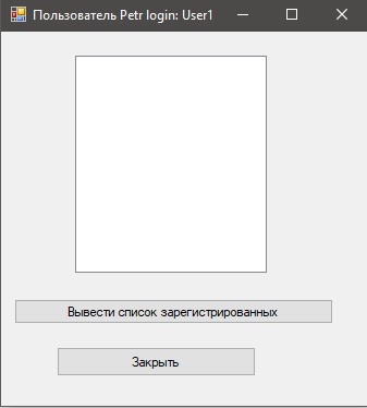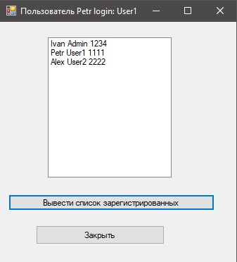 Якщо в Form3 натиснути кнопку «Вивести список», виведеться список всіх зареєстрованих користувачів. Тобто в Form3 ми маємо доступ до всього списку