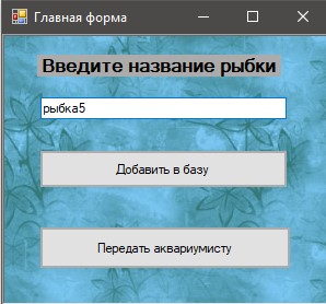 У текстове поле вводиться назва рибки. При натисканні кнопки "Додати в базу" введена назва дописується до списку List.