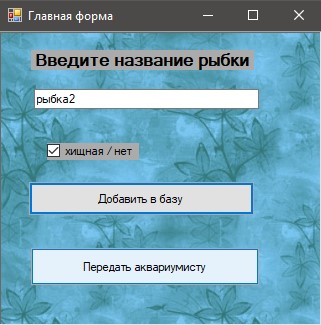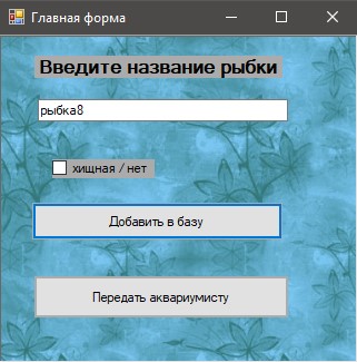 У текстове поле вводиться назва рибки. Чекбоксом позначаються хижі рибки.