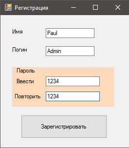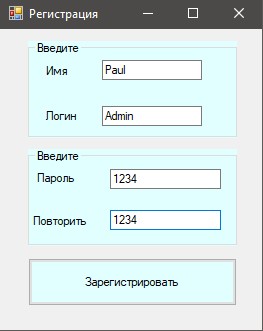 На формі Реєстрація вводимо дані про нового користувача (ім'я, логін і двічі пароль), потім шукаємо такого користувача в уже створеному списку List зареєстрованих користувачів.