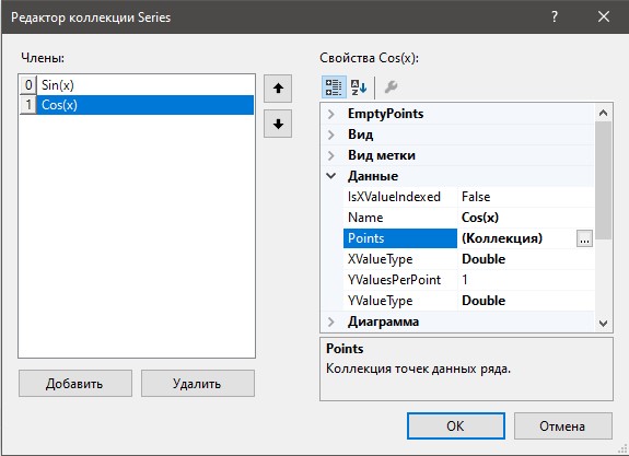 Графіки будуються на основі вмісту колекції Points. Ми будемо додавати значення в цю колекцію в процесі обчислення X та Y. Для цього ми використовуватимемо метод AddXY. Він додає одразу два значення: X та Y.