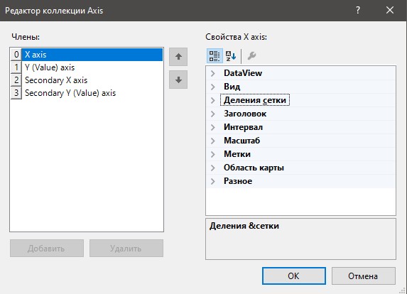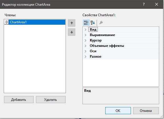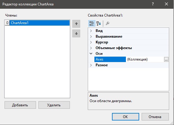 ChartAreas – масив областей, в яких будуються графіки. Використовуючи цю властивість, можна змінити стандартний вигляд.