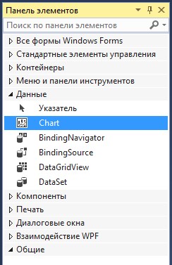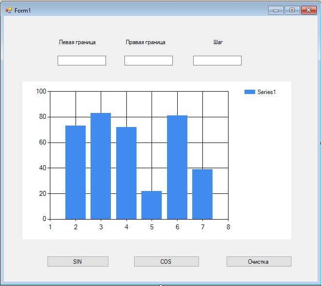 Розташуємо на формі текстові поля, написи та кнопки. Для побудови графіка використаємо елемент Chart з групи "Дані".