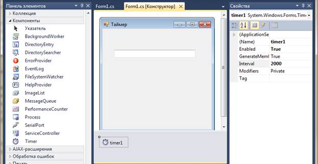 Властивість Interval визначає період, з яким таймер генерує події Tick. Цей час встановлюється у мілісекундах. Ми встановили період таймера рівним 2 секундам.