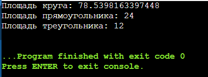 Console.WriteLine("Площа трикутника: " + triangleCalculator.CalculateArea());