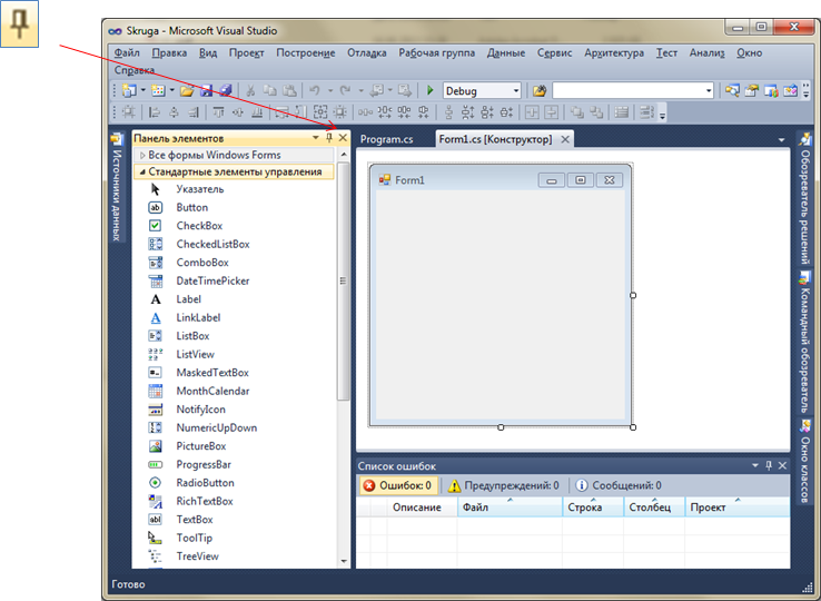 Тому спочатку потрібно перейти на вкладку "Конструктор форми", а потім виконати команду: Вид, Панель елементів. Щоб ця панель не закривала форму, натисніть