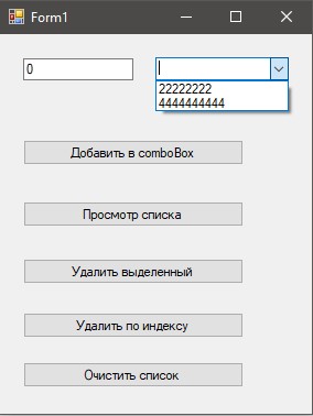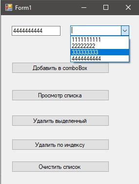 При натисканні на кнопку «Додати до comboBox», зчитується зміст текстового поля і додається в список.