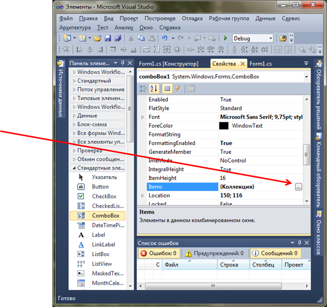 Для формування списку для виділеного елемента Combobox потрібно: