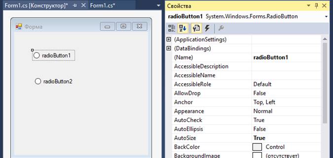 | Name | radioButton1, radioButton2,... | Імена об'єктів |