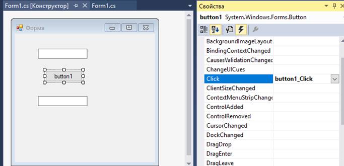 Наприклад, створимо обробник події "Click" для кнопки button1.
